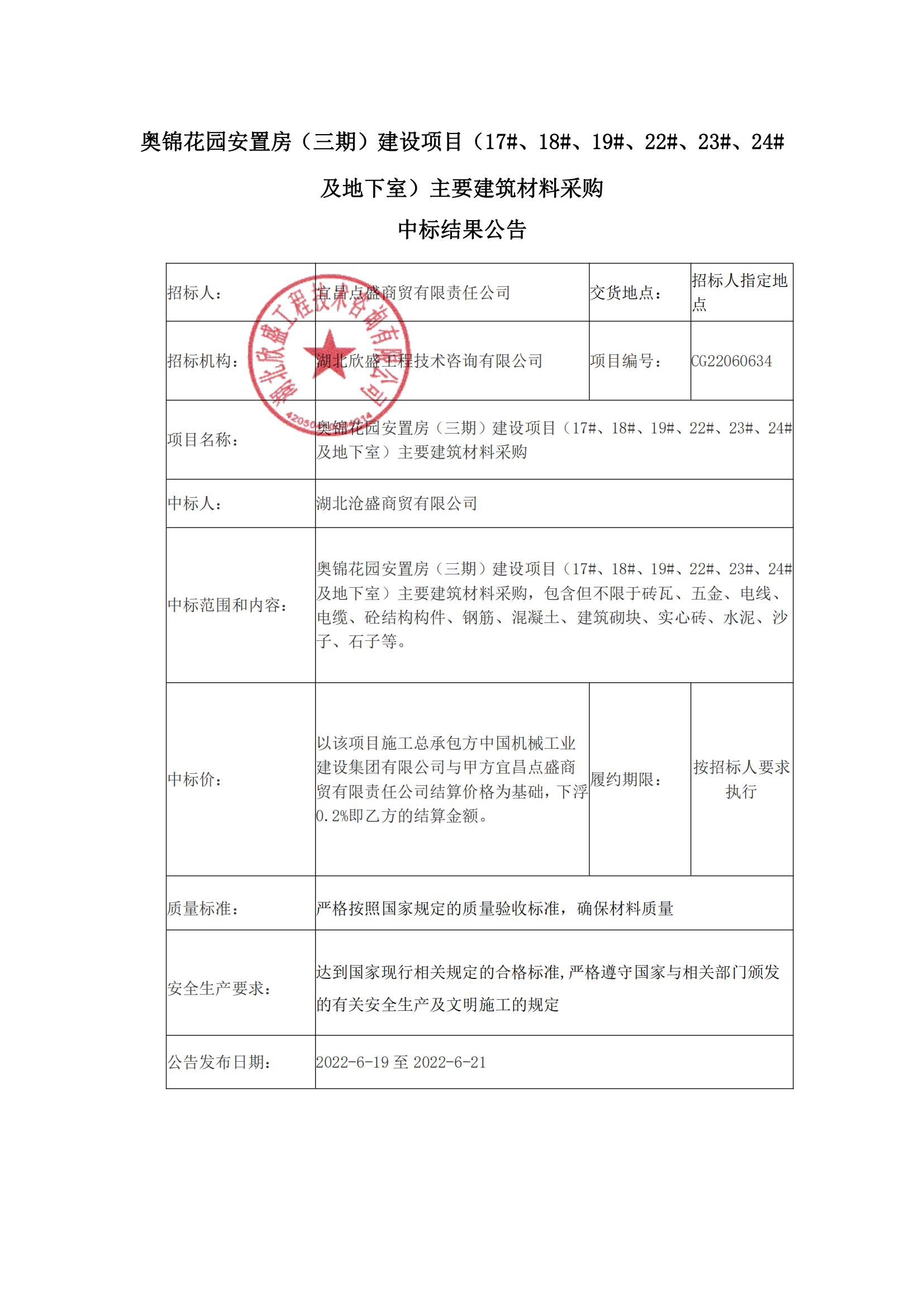 奧錦花園安置房(三期)建設(shè)項(xiàng)目(17#、18#、19#、22#、23#、24#及地下室)主要建筑材料采購中標(biāo)結(jié)果公告
