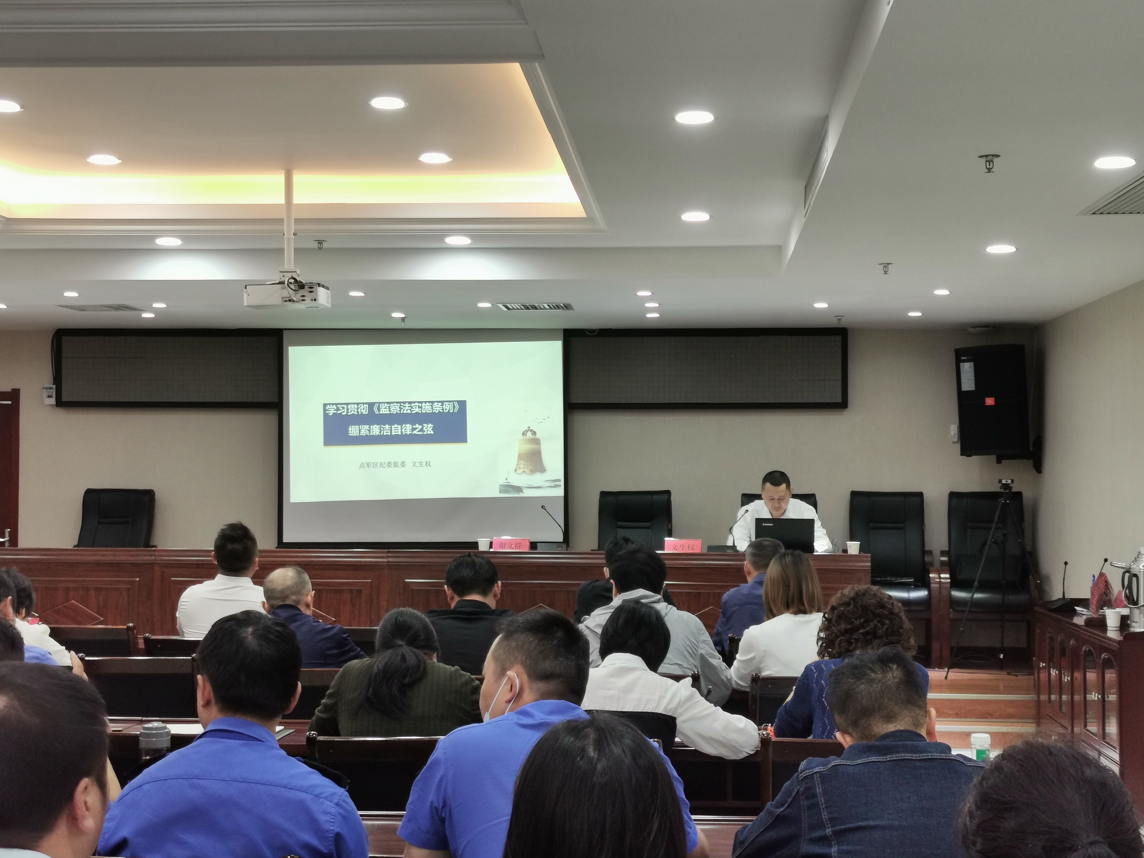 宣講以《學習貫徹<監(jiān)察法實施條例>繃緊廉潔自律之弦》為題,從《監(jiān)察法》及實施條例的關系,《條例》制定的背景、重要意義及主要內容,職務犯罪釋義及幾種典型職務犯罪解析,公職人員禁止經商辦企業(yè)的相關規(guī)定,如何做一名遵紀守法的黨員干部五個方面進行講解,以案說紀,進一步教育廣大黨員干部樹牢紀法意識。