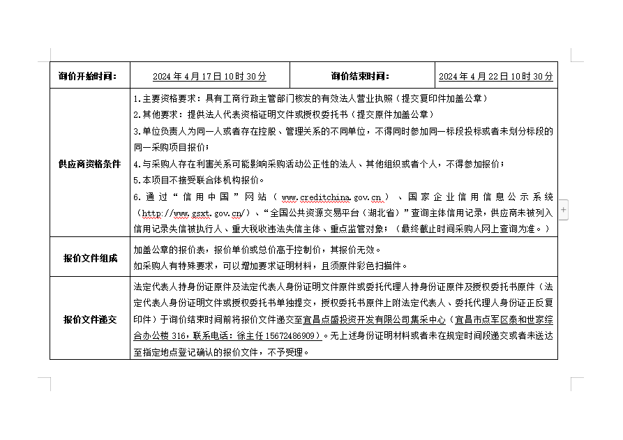 詢價(jià)公告