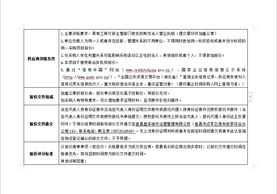 詢價(jià)公告