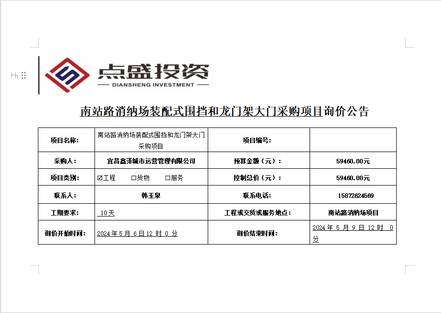 南站路消納場(chǎng)裝配式圍擋和龍門架大門采購項(xiàng)目詢價(jià)公告
