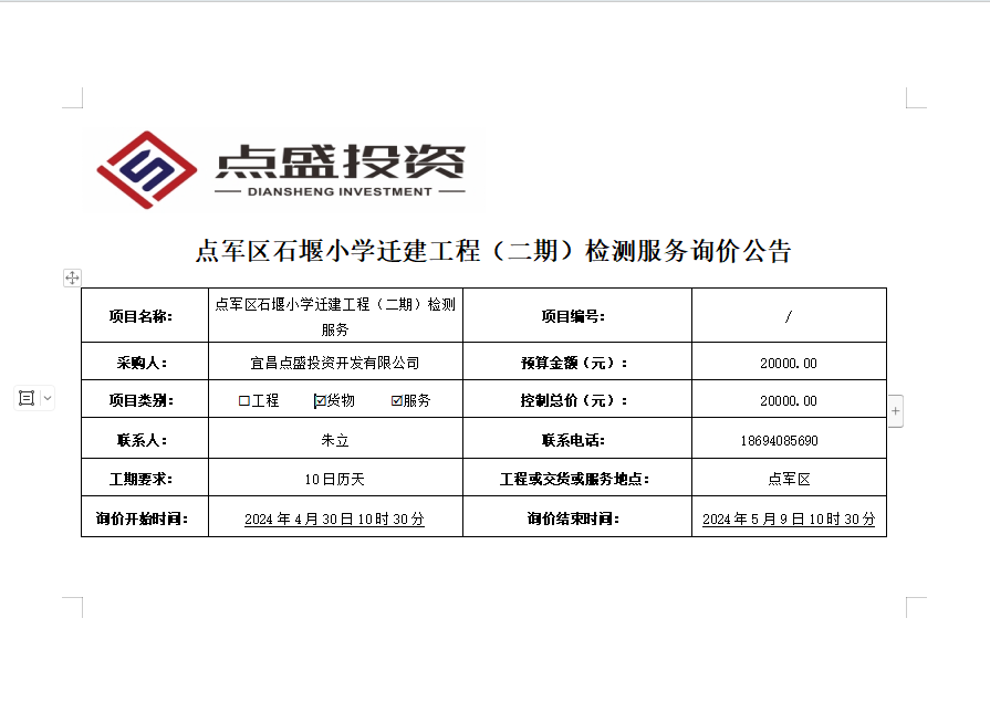 點軍區(qū)石堰小學(xué)遷建工程(二期)檢測服務(wù)詢價公告