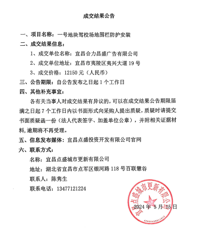 城市更新一號地塊駕校場地圍欄防護安裝成交公告