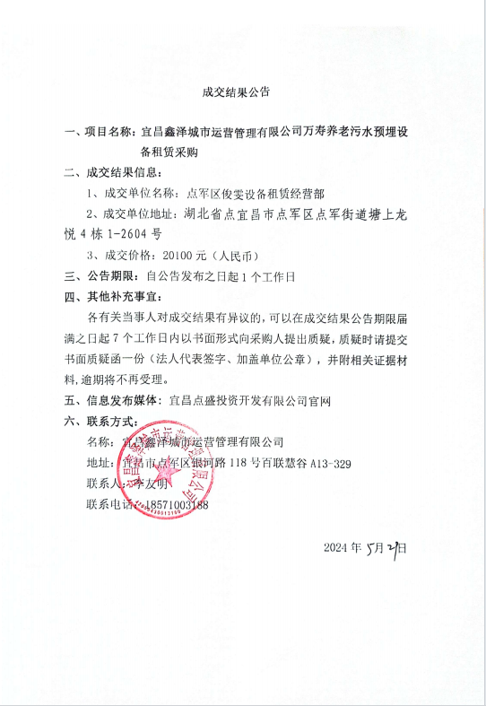 萬壽養(yǎng)老污水預(yù)埋設(shè)備租賃采購成交公告