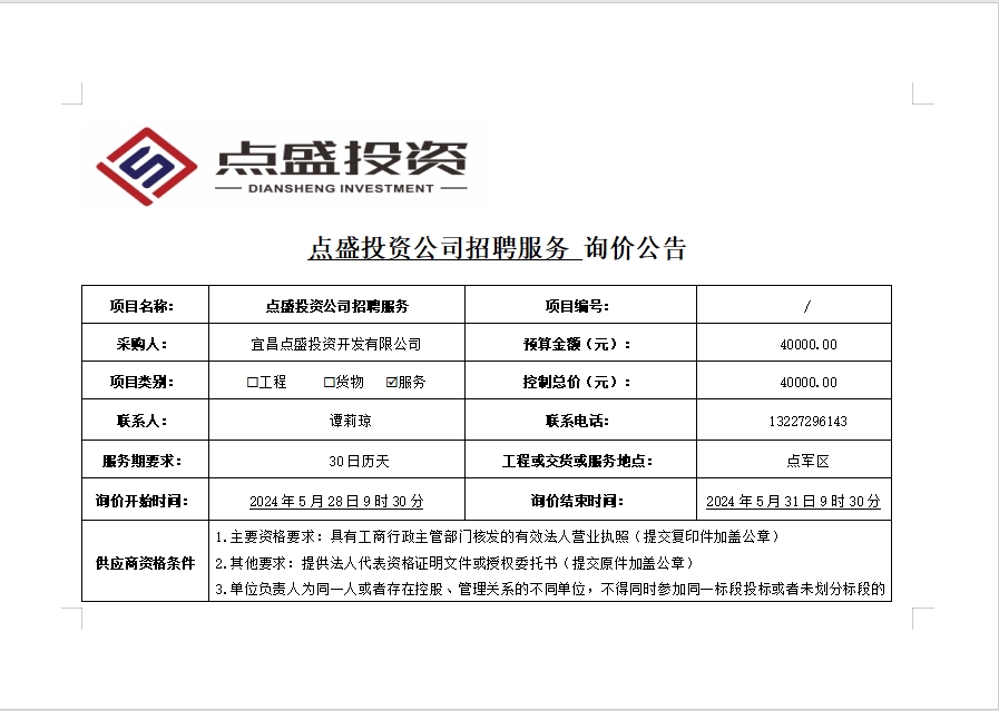 發(fā)布時間:2024/5/28 來源:宜昌點盛投資開發(fā)有限公司 訪問:6540