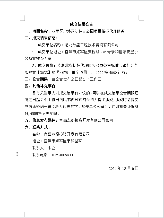 發(fā)布時(shí)間:2024/12/6 來(lái)源:宜昌點(diǎn)盛投資開(kāi)發(fā)有限公司 訪問(wèn):6497