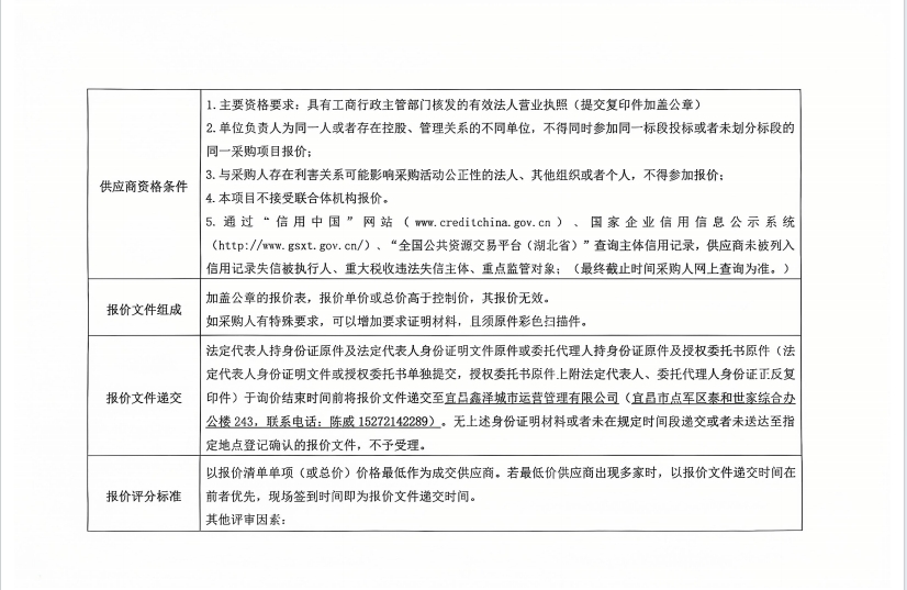 詢(xún)價(jià)公告