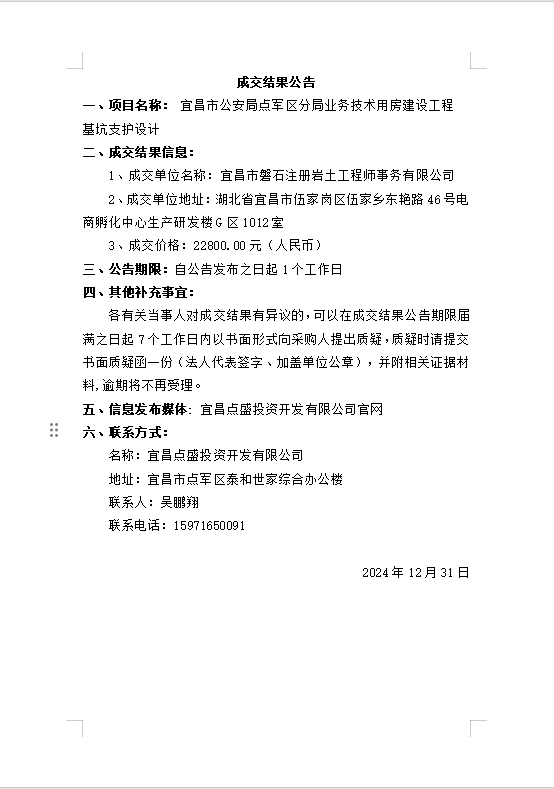 宜昌市公安局點軍區(qū)分局業(yè)務技術(shù)用房建設工程基坑支護設計成交公告