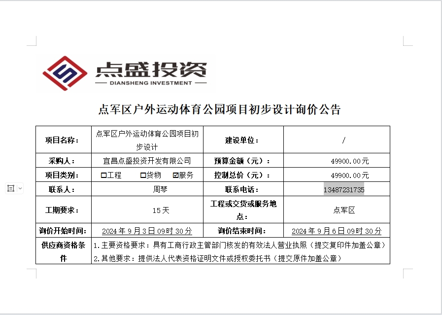 發(fā)布時間:2024/9/3 來源:宜昌點盛投資開發(fā)有限公司 訪問:6337