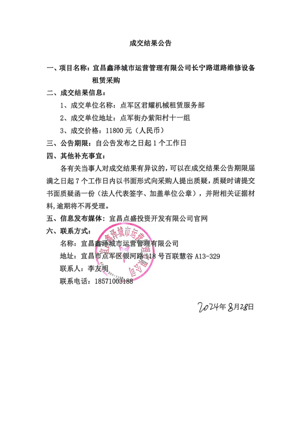 長(zhǎng)寧路道路維修設(shè)備租賃采購(gòu)成交公告