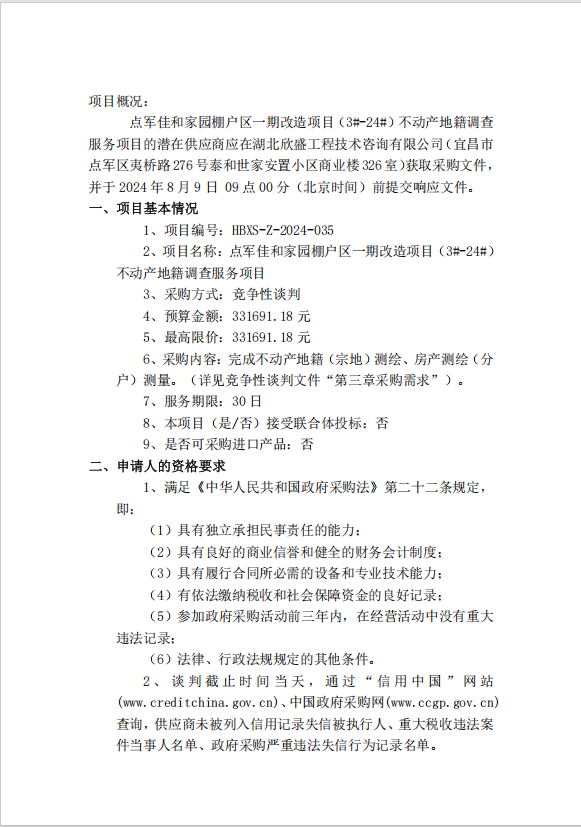 點(diǎn)軍佳和家園棚戶(hù)區(qū)一期改造項(xiàng)目(3#-24#)不動(dòng)產(chǎn)地籍調(diào)查服務(wù)項(xiàng)目談判公告
